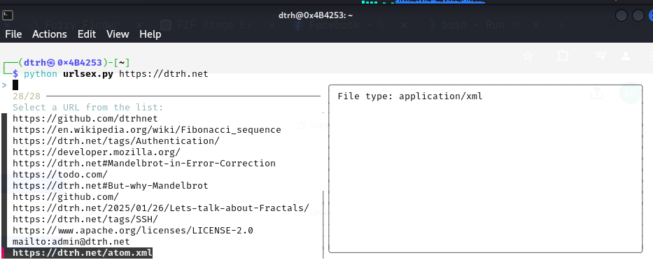 Enter any URL, scrape every ‘href’, sort by extension, fuzzy-filter, then act on the selection.