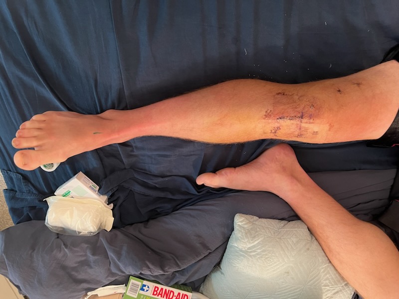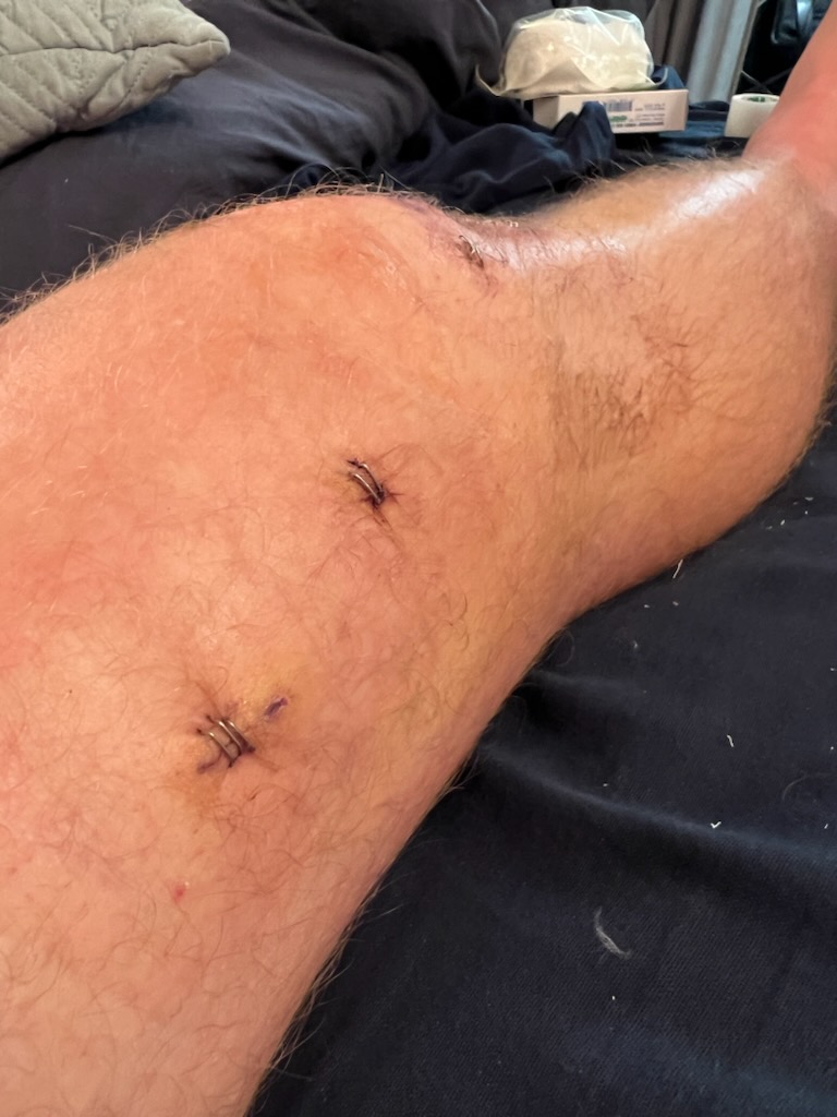 An example of what I mean above would be geting myself off the bed, I’d position myself on the bed with my bad (right)leg parallel to the edge. By leaning back and hooking my left foot under the heel on my right foot, I was able to lift the leg upwards while maintaining its unbent position by using my body weight combined with the upward push from my left leg. At this point I could shift myself so both legs were no longer over the bed itself, and slowly lower it to the floor. With that said, I am thankful to have my girlfriend here with me and taking good care. After a week now, I can say things have progressively improved and continue to do so. I can now get up and down the stairs on crutches quite easily on my own. This of course includes getting in and out of bed and other tasks one takes for granted.